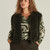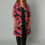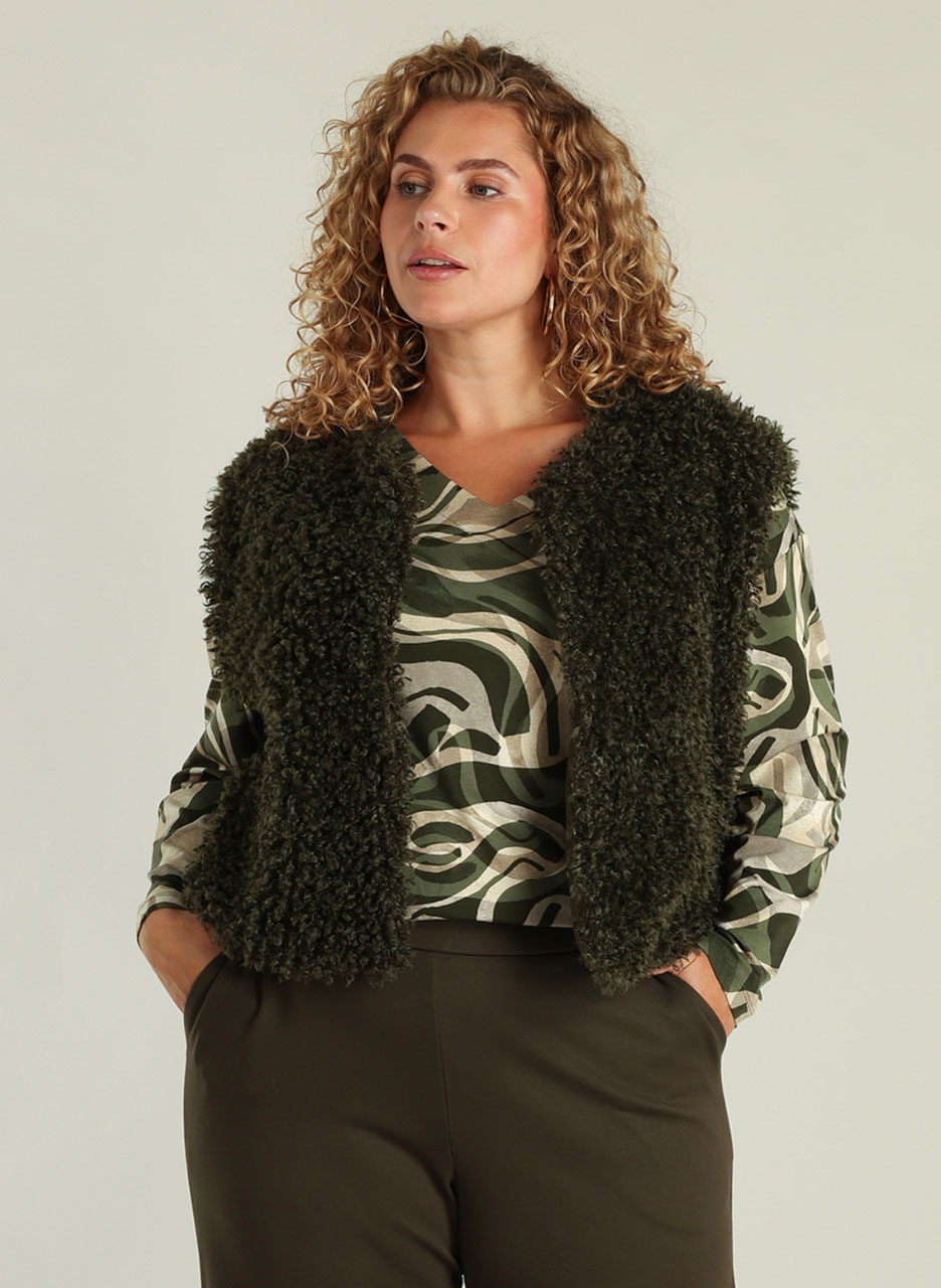 Dit leuke vest heeft 3/4 mouwen met elastisch boordje en is gerimpeld.
