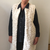 vest met V-hals en een knoopsluiting. Het vest heeft een prachtig patroon op de borst, schouders en rug dat kleur en levendigheid toevoegt aan het klassieke ontwerp.