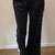 De broek heeft een bootleg pijp ( uitlopende pijp) en een elastische tailleband.
