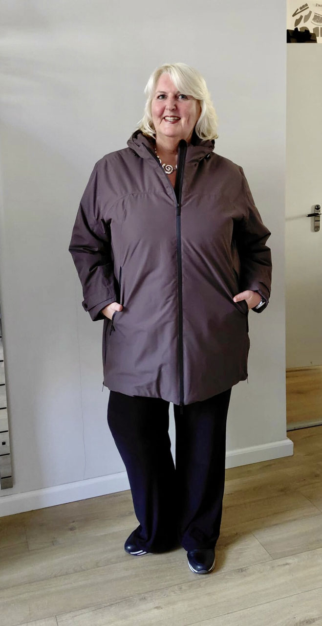 De jas is gemaakt van hoogwaardige, waterdichte materialen, licht gewatteerd en krijgt een print zodra hij nat wordt en heeft een elegant en getailleerd silhouet. De vaste capuchon beschermt je tegen onverwachte buien, terwijl de handige zakken met ritsen je spullen veilig en droog houden. En heeft ritsen aan de zijkant voor op de fiets. De diepe, donkerbruine kleur is chic en tijdloos en makkelijk te combineren met elke outfit, van casual jeans tot een meer geklede look.