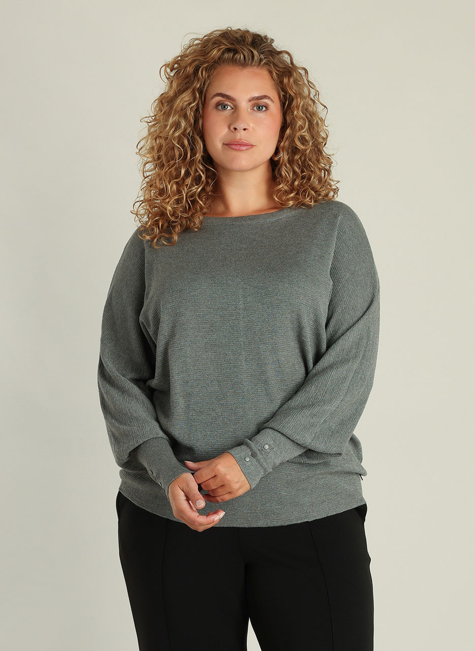 Trui Ghislaine, de perfecte combinatie van comfort en klasse. Deze gebreide trui tilt elke outfit direct naar een hoger niveau dankzij de subtiele, maar opvallende zilveren knoopjes op de schouder.