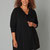 Zwarte A-lijn tuniek met V-hals en plissé detail Elegante grote maten tuniek in zwarte Dolce stof, met V-hals, lange mouwen en een sierlijke plissé strook voorop. Gemaakt van 95% polyester en 5% elastaan: comfortabel en stijlvol in één.