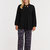 Elegante zwarte blouse in een flatterend flaire model, afgewerkt met zilverkleurige knoopsluiting, een klassiek kraagje en decoratieve borstzakjes. Gemaakt van zachte Dolce stof (60% polyester, 35% gerecycled polyester, 5% elastaan) voor een comfortabele pasvorm en duurzame uitstraling. De lange mouwen maken deze blouse perfect voor elk seizoen.