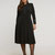 De jurk heeft een polokraagje, knoopsluiting bij de buste, lange mouwen met manchet en zakken.
