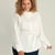 De blouse heeft een 3/4 pofmouw met elastische boordjes en ruches.